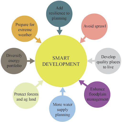 The recommendations contained in this document directly address climate vulnerabilities and risks as identified through a thorough, scientific assessment of local impacts (Albemarle County, 2022). Our recommendations include ways to maximize the potential of designated Development Areas while preserving rural and natural lands, protecting lives and livelihoods, increasing energy efficiencies and adopting smart renewable policies, and incorporating climate-ready planning processes and nature-based solutions into Albemarle’s local land use planning framework. In addition to building resilience, our recommendations also create new and expanded economic and leadership opportunities and enhanced quality of life for all residents.