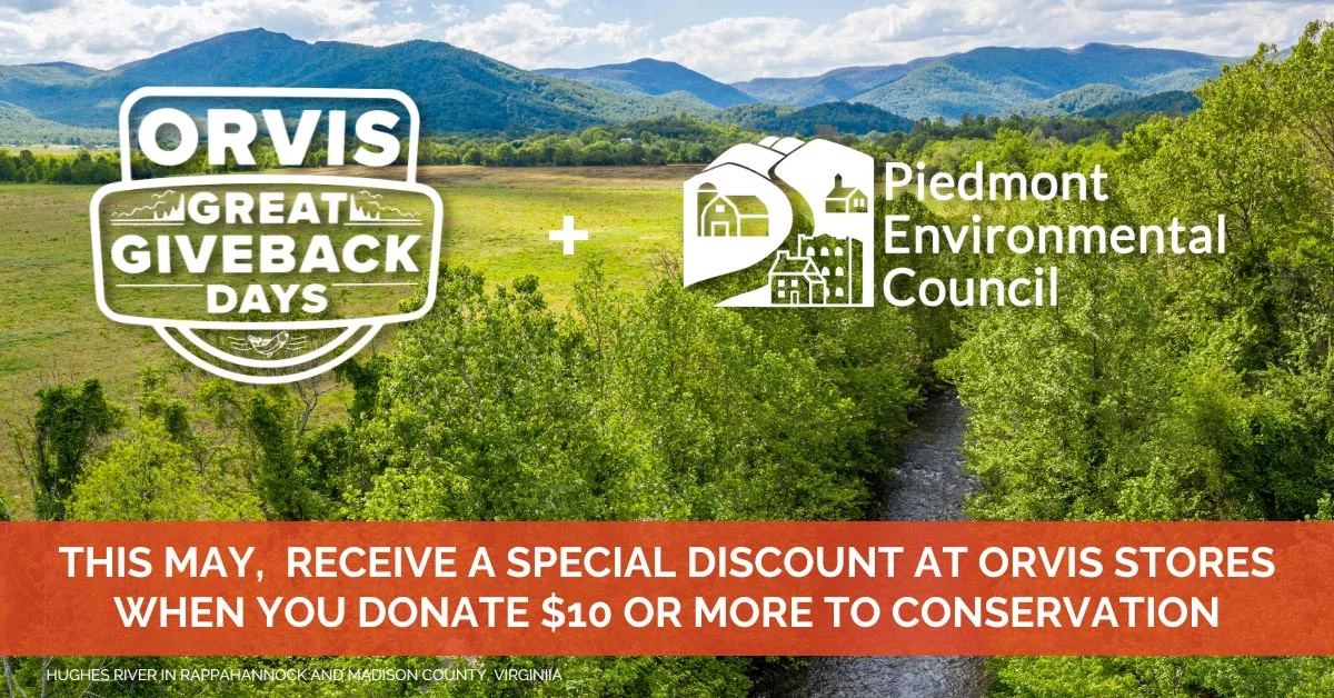 P.S. We’ve got a win-win opportunity for you: Refresh your outdoor gear for spring and support PEC’s tree planting program! For the entire month of May, receive a special discount at Orvis retail stores in Arlington, Tyson’s Corner and Leesburg when you donate to PEC. Offer valid on donations of $10 or more and during the month of May only. Two ways to donate – online at pecva.org/donate and in store at Orvis.