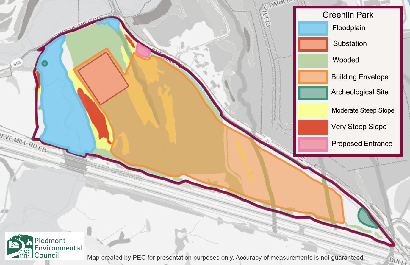 This leads us to the latest data center development at Greenlin Park, a proposal to rezone 81 acres of former farmland and steep forestlands along Dulles Greenway to allow data centers by-right.