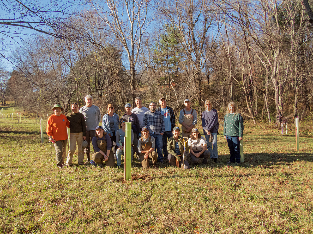 On November 9, 2022, 23 volunteers, including students from Belle Meade Montessori School, joined PEC staff at the Lane Property in Sperryville, VA, for a fall tree planting.