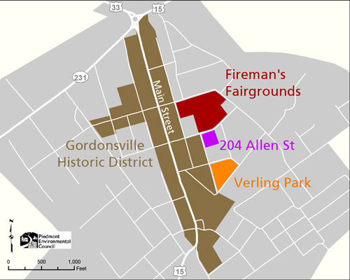 This latest acquisition, located within the block between Fireman’s Fairgrounds and Verling Park, is a key piece of Gordonsville Visions, a conceptual plan that includes specific park and trail projects that help advance the Town’s comprehensive plan. Gordonsville Visions was developed by UVA’s School of Architecture’s Historic Preservation program in collaboration with the Gordonsville community.