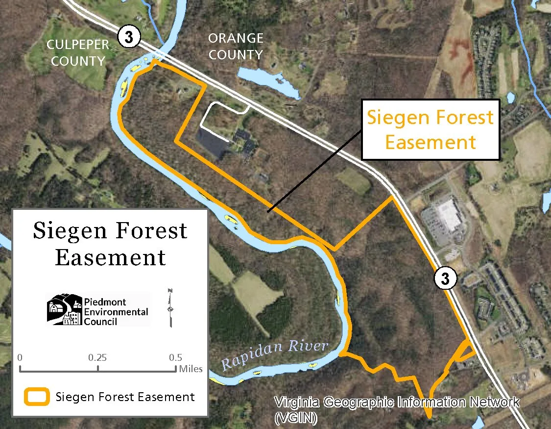 Ultimately, PEC Conservation Director Mike Kane helped envision a conservation solution through Virginia’s Land Preservation Tax Credit and other grants. Blomstrom wrote a successful grant application for $647,370 from the Virginia Land Conservation Foundation to help purchase the Siegen Forest easement, and the American Battlefield Trust contributed another $655,000 with an American Battlefield Protection Program grant from the National Park Service. With a generous gift from Bill Prime for conservation in the Rappahannock watershed, PEC contributed another $20,000 for additional costs associated with the easement, “which was well spent on Reese Conservation Consulting, who which helped bring all the funding pieces and partners to closing,” Blomstrom said.