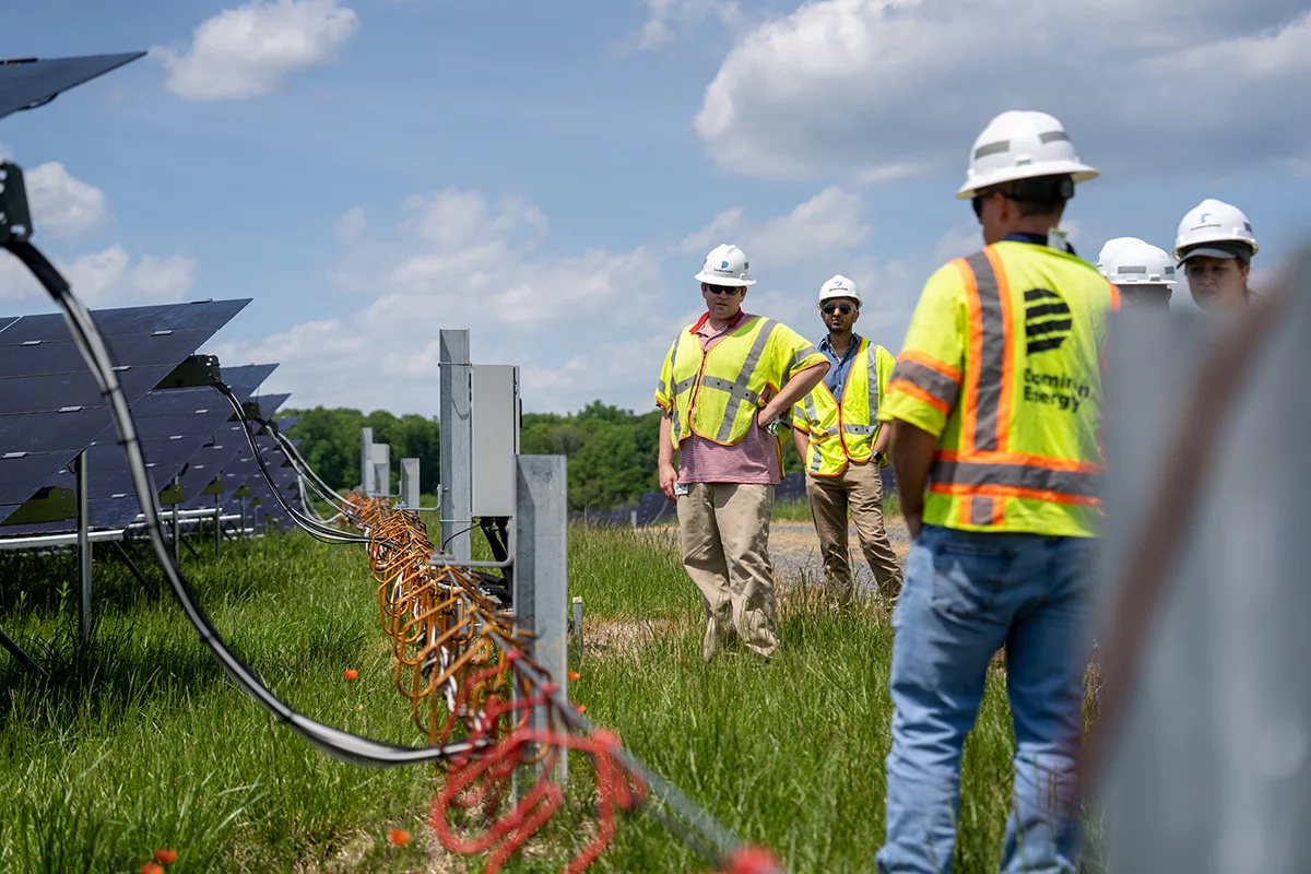 Ashish Kapoor (2nd from left) recently joined other PEC staff members and Dominion Energy representatives at a utility-scale solar facility in Remington. Photo by Hugh Kenny/PEC