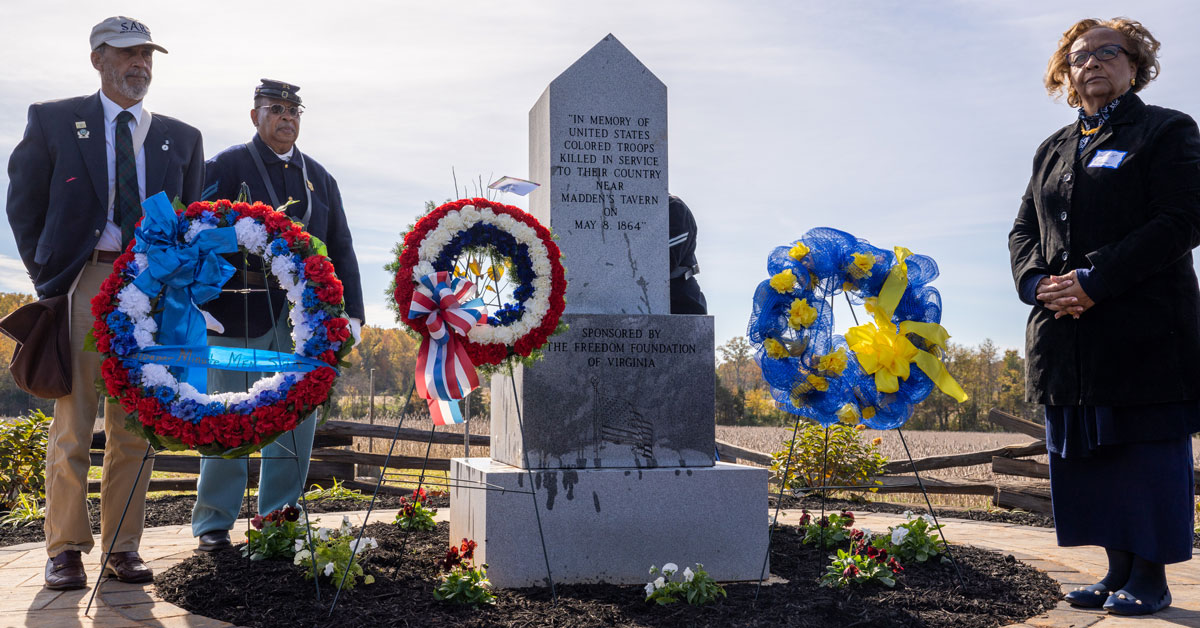 On the stunningly sunny and crystal clear, crisp morning of Saturday, Nov. 6, just ahead of Veteran’s Day, some 200 people from far and wide came together in rural Culpeper County, Virginia to dedicate a new Civil War memorial site honoring three United States Colored Troops killed nearby in 1864 and the contributions of the family of a free Black man, Willis Madden.