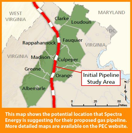 If you’re not on our email list, you may have missed that there was some welcome news on the proposed Spectra Energy gas pipeline, which affected Albemarle, Culpeper, Fauquier, Madison, Orange and Rappahannock Counties.