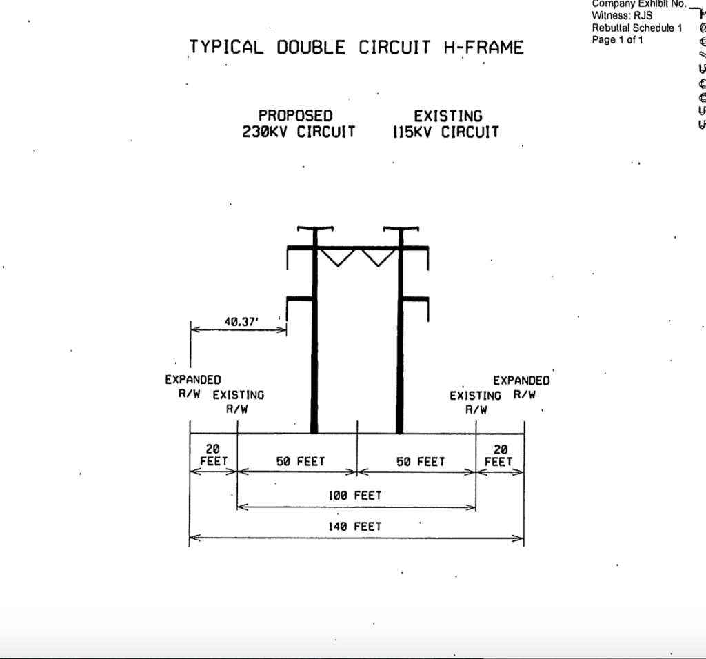 “In response to public concern and the testimony of the Commission Staff (“Staff’), the Company evaluated the potential use of shorter H-frame structures with an average height of 85 feet (“Shorter Structure Option”) where feasible along portions of the route. The Shorter Structure Option would require expansion of the right-of-way to 140 feet to accommodate the shorter structures. The Company concluded that it is technically feasible and may be reasonable to install the Shorter Structure Option for portions of the right-of-way where there are not constraints subject to four conditions. The Shorter Structure Option is feasible for 24.1 miles of the route.