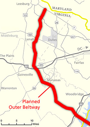 Speculative real estate developers are pushing to create a new highway in Northern Virginia referred to as the Outer Beltway or Bi-County Parkway. As we see it, this controversial new highway would cut through a National Park, open up over 100,000 acres to new development, and has the potential to actually increase traffic congestion on other roads.