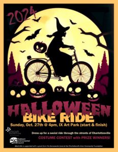 Get your costume, scare up some friends and join the Piedmont Mobility Alliance for a free, fun, relaxed and social bicycle ride through the streets of Charlottesville!