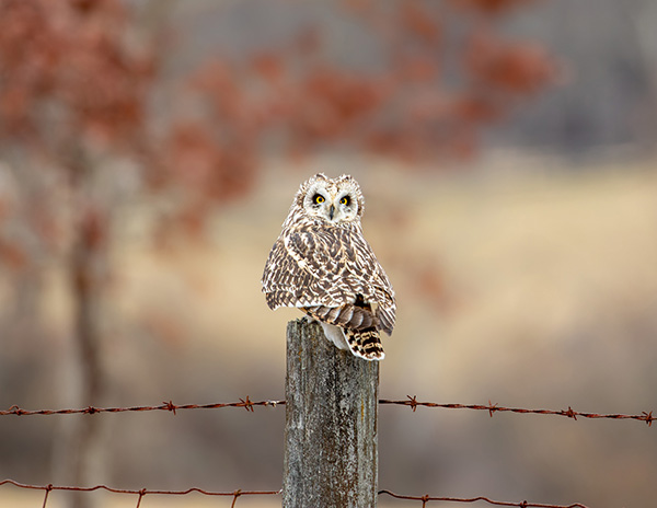 An owl perches on a wooden fencepost in Upperville, Fauquier County. |