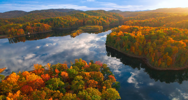Changing leaves at Ragged Mountain Reservoir in Albemarle |