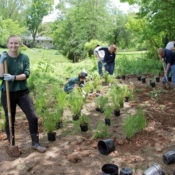 On Saturday, April 25th, the Sugarland Run community planted over 160 native trees and shrubs to help reduce air and water pollution in Sterling and add beneficial habitat. Over 80 people turned out to get a little dirty and work together for the environment and enjoy a feeling of accomplishment.