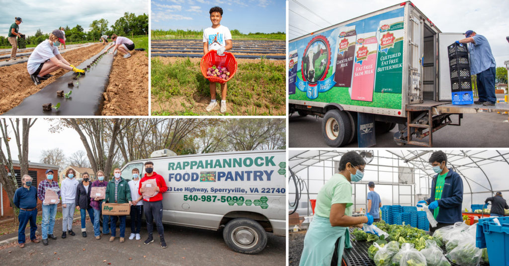 In 2020, with the help of partners and supporters, we’ve provided 25,000 pounds of vegetables, 25,000 gallons of milk, and more than 11,000 pounds of local beef and pork to food-insecure communities in our nine-county region of the northern Piedmont. That’s more than 50,000 pounds of locally-sourced products for local food banks, which has a very different impact on the local economy than shipping in 50,000 pounds of food from somewhere else.