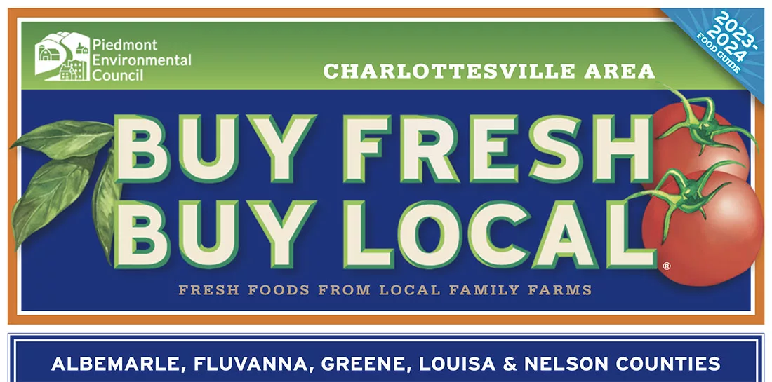 CHARLOTTESVILLE, Va. (May 8, 2023) – With the spring growing season upon the Virginia Piedmont, The Piedmont Environmental Council is pleased to announce the release of its 2023-2024 Buy Fresh Buy Local Charlottesville area guide, offering a one-stop source connecting consumers to fresh fruit, vegetables, dairy, meat and more, by way of local farmers and farmers markets.