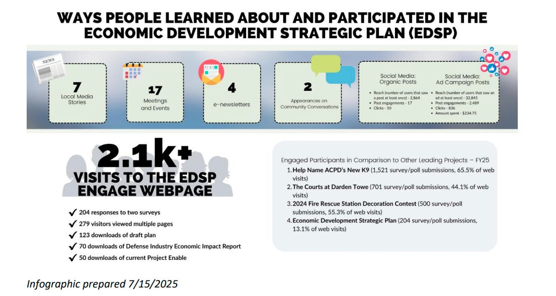 “Over the past 12 months, staff have worked with a consultant to conduct data analysis, stakeholder engagement, and solicit community input to develop the draft economic development strategic plan,” reads the staff report.