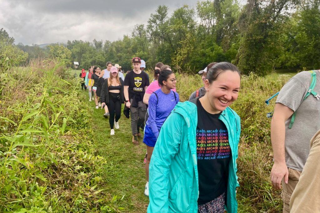 More than 350 people braved a rainy day to take part in the Loop de ’Ville Sept. 23, 2025. The full-day, 20-mile adventure is organized by a coalition of groups seeking to draw more people outdoors, specifically to experience Charlottesville’s Rivanna Trail. The event’s growing popularity is driving improvements to make the trail more inviting, unleashing a virtuous cycle of more people spending time on a more-welcoming trail.