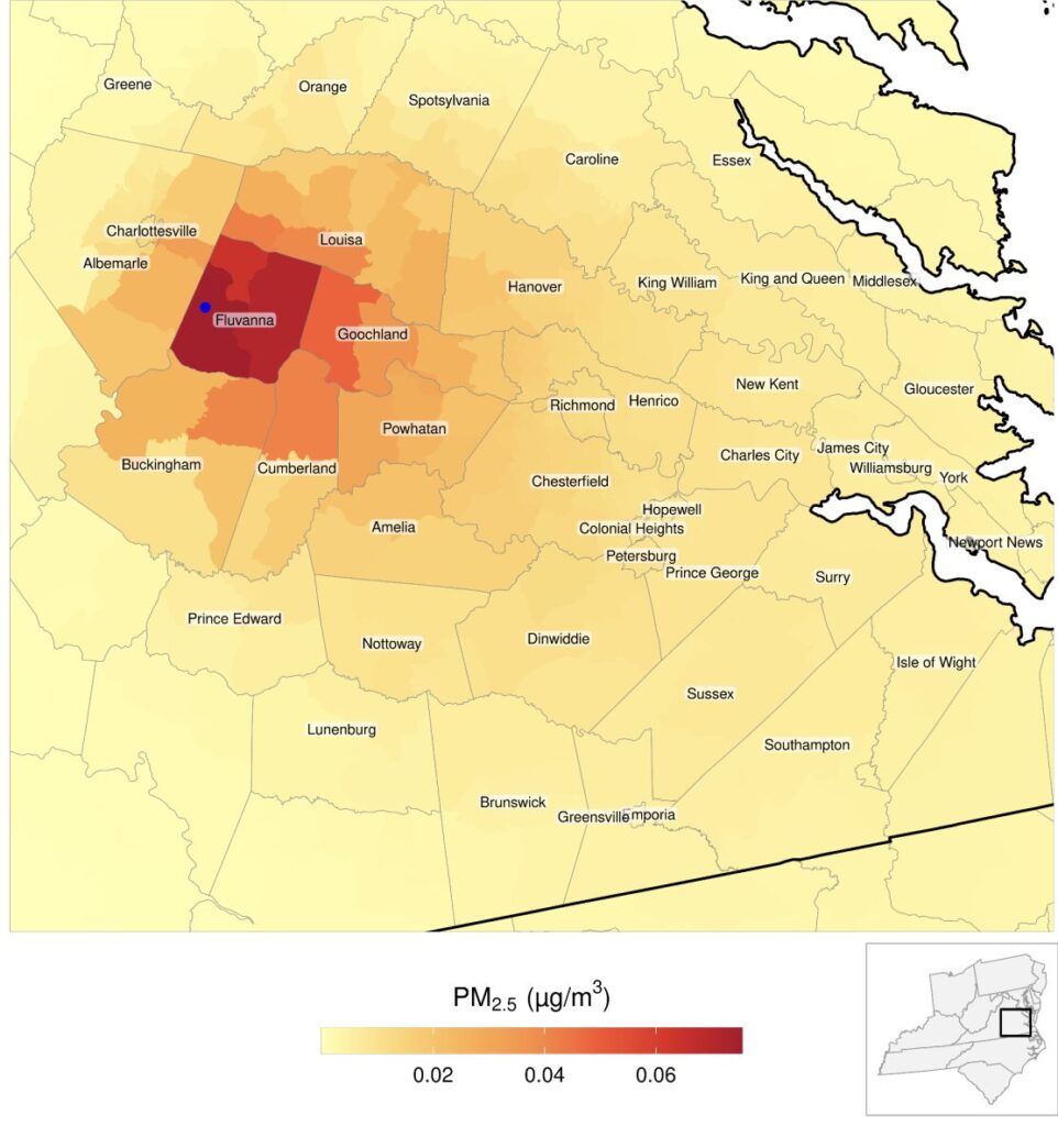While Fluvanna County is outside of PEC’s nine-county service region, environmental impacts do not stop at county lines. Pollution from this gas plant is expected to spread to Charlottesville and eastern Albemarle County, including the communities of Esmont, Porters, Scottsville, and Keswick, and as far as Lousia, Goochland, Powhatan, Cumberland, and Chesterfield.