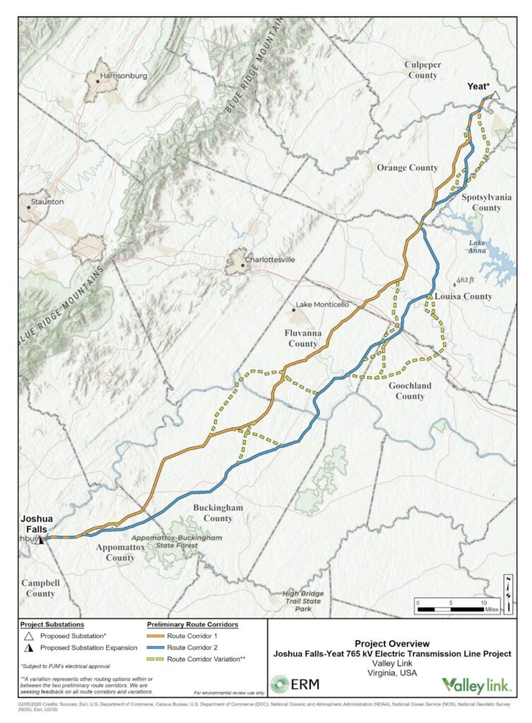 Joining the list of new energy and infrastructure proposals across the state to serve sky-rocketing data center demand is a proposal to build the largest transmission line ever seen in Dominion Energy’s territoryDubbed “Joshua Falls-Yeat,” the 115-mile, 765 kilovolt transmission line would cross as many as nine counties in central Virginia.