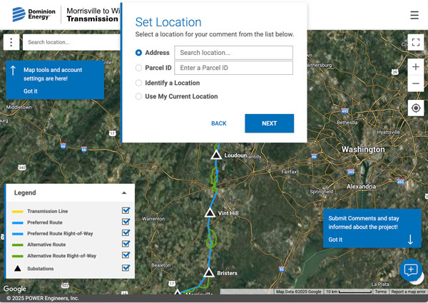If you would like to submit general comments without using the mapping tool, you can also contact Dominion by email at [email protected] or by phone at 888-291-0190.
