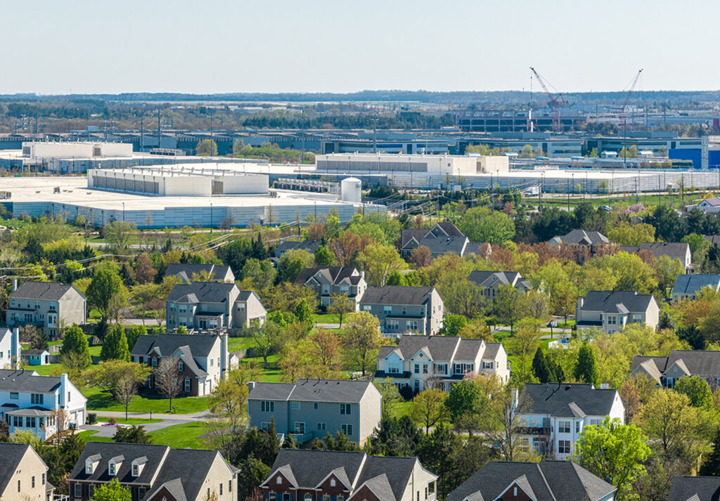 Data centers directly next to neighborhoods in Ashburn, VA.