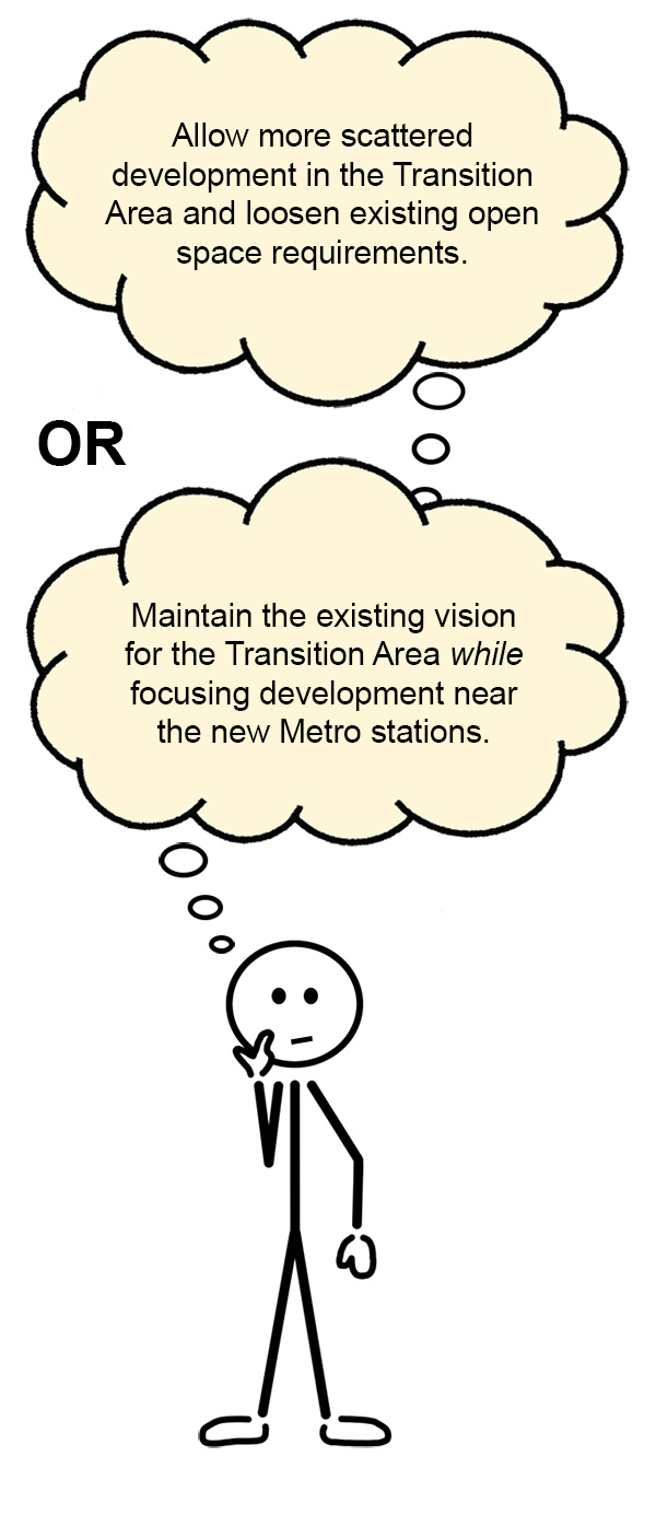 Maintaining current zoning within the Transition Area and focusing increases in density near Loudoun’s new Metro stations would result in: