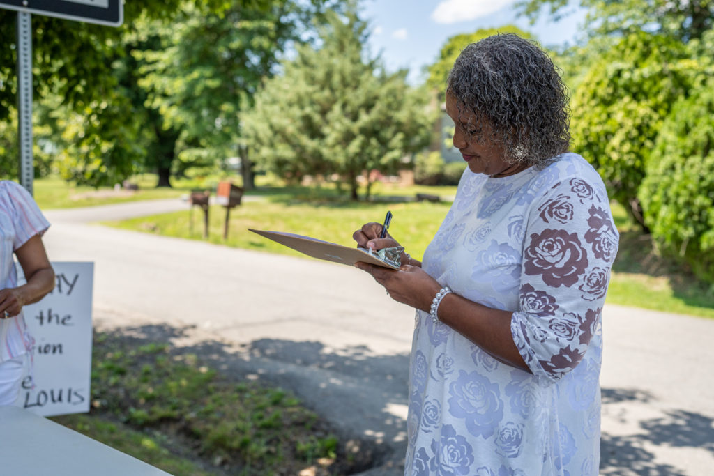 Residents of St. Louis sign a petition asking Loudoun’s board of supervisors to protect their water and the future of the village. Photo by Hugh Kenny/PEC