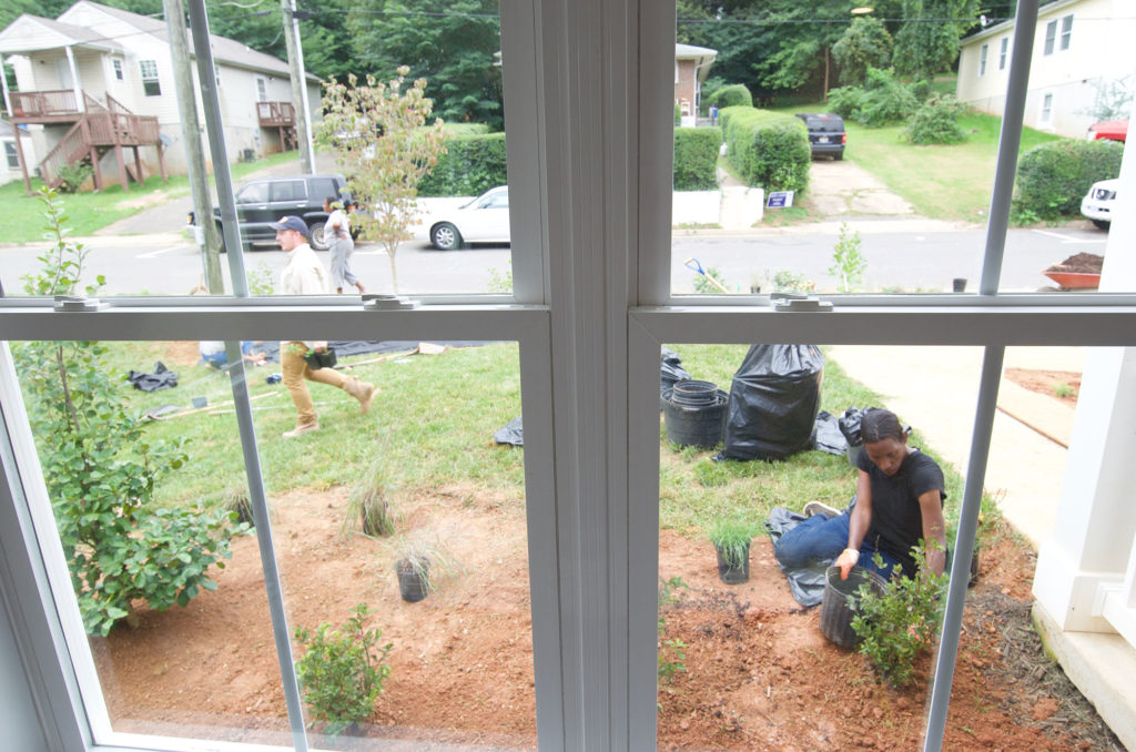 Volunteers and staff plant in the front yard. Photo by Lou Emerson.