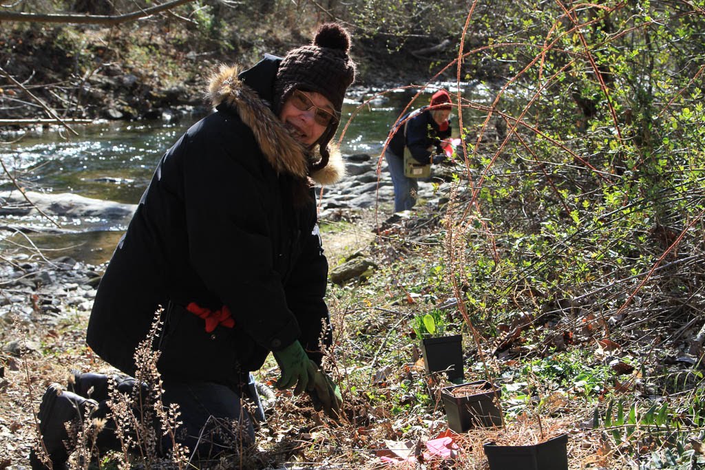Ruth Welch planting bluebells. Photo by Torney Van Acker.