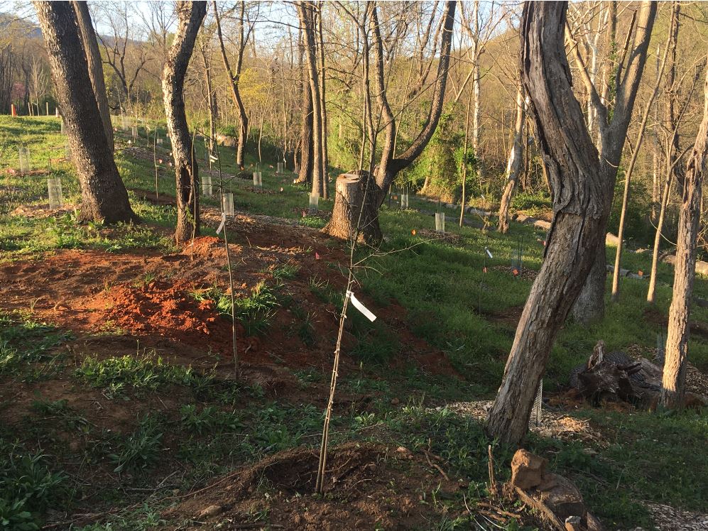These ideas, and others, have now been worked into a new master plan for the park, made possible by the Krebser Fund grant. And work is already underway! Volunteers have pulled invasives, cleared trails, felled dead ash trees and picked up litter. Earlier this spring, the park’s advisory council partnered with Friends of the Rappahannock and PEC to plant 145 new native trees. An important section of the park’s right-of-way that borders Highway 211 has been planted with flowering redbuds for the spring and sugar maples that will boast bright red foliage this fall.