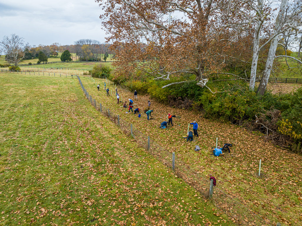 On October 31, 2022, 23 volunteers joined PEC staff at Long Branch Historic House and Farm in Boyce, VA, to plant hundreds of native trees and shrubs. The 283 saplings include a variety of species: buttonbush, pin oak, sycamore, river birch, swamp white oak, silky dogwood, persimmon, pawpaw, chinquapin, elderberry, flowering dogwood, and white oak.