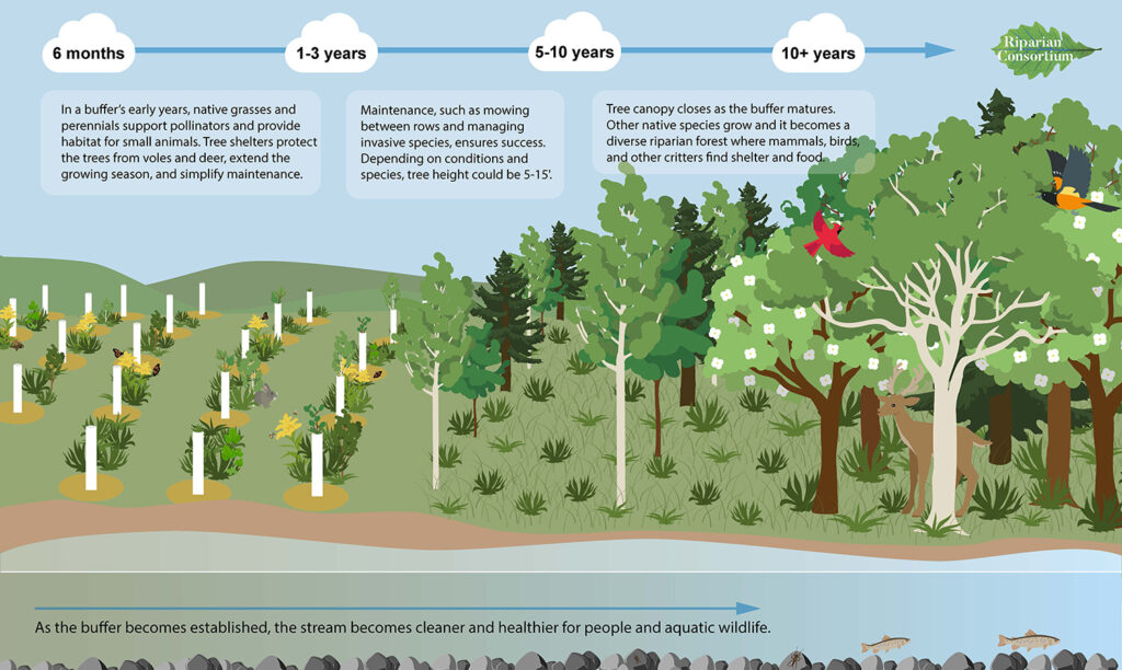 Download our fact sheet → Riparian Buffers: Benefits for water, wildlife, and people