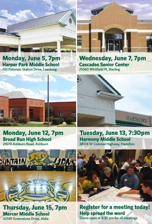 ![]() The second round of public input meetings about future growth in Loudoun County will begin on June 5. Photo from Envision Loudoun. Learn more >> |
