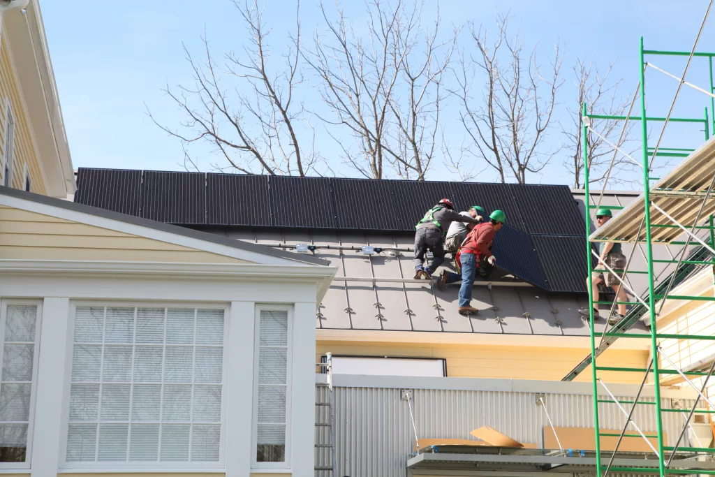 Rooftop solar panels, like these at PEC’s Warrenton office, will now face less delay to permit thanks to new legislation supported by PEC. Photo by Paula Combs.