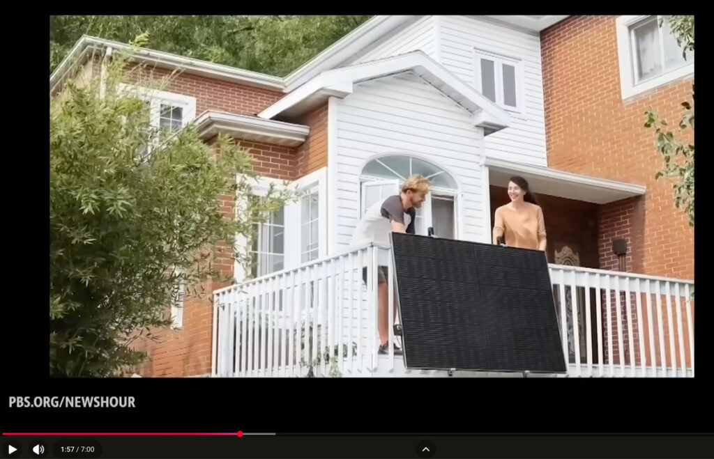 “Plug-in” or “Balcony” solar allows anyone, regardless of their homeownership, to generate some of their own power with small solar panel units. Check out this short PBS News piece from a few months ago.