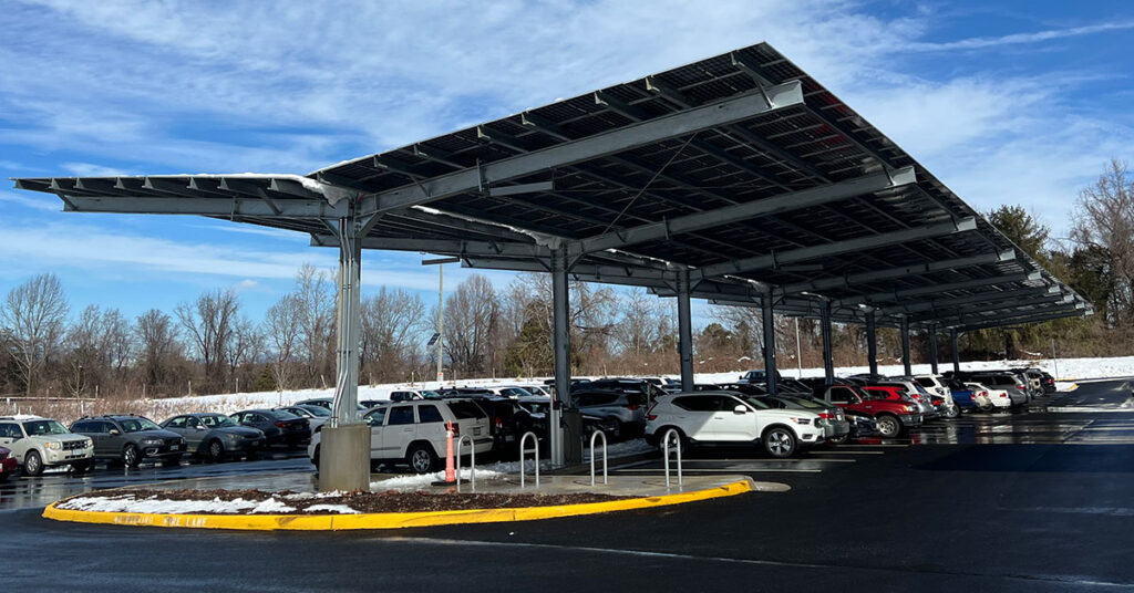 Parking lot solar, like this one in Albemarle County is one type of distributed generation. Virginia will now see more solar on the built environment like this thanks to new legislation. Photo by Rob McGinnis/PEC.