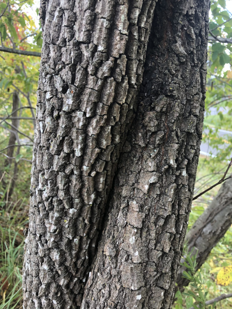 Common persimmon, Diospyros virginiana, is a slow-growing, deciduous species that is native to the Southeast. The tree itself is fairly nondescript and often goes unnoticed along field edges, roadways and woodlands. Its leaves are alternate, simple and dark green. The leaves are also leathery to the touch and provide a satisfying crunch when you snap them in half. Persimmons generally grow to be about 15-20’ tall, even though certain specimens have reached a whopping 60’ in height. As the tree matures, the bark darkens and breaks up into thick, scaley plates between orange fissures. Many folks often compare it to charcoal briquettes or alligator skin.